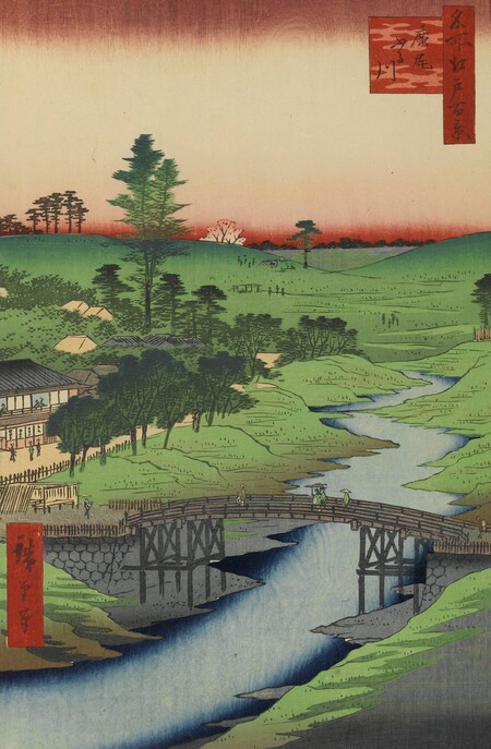 Мосты Нихонбаси и Эдобаси. «100 знаменитых видов Эдо». Утагава Хиросигэ; Река Фурукава в местности Хироо. Серия «100 знаменитых видов Эдо». Утагава Хиросигэ.