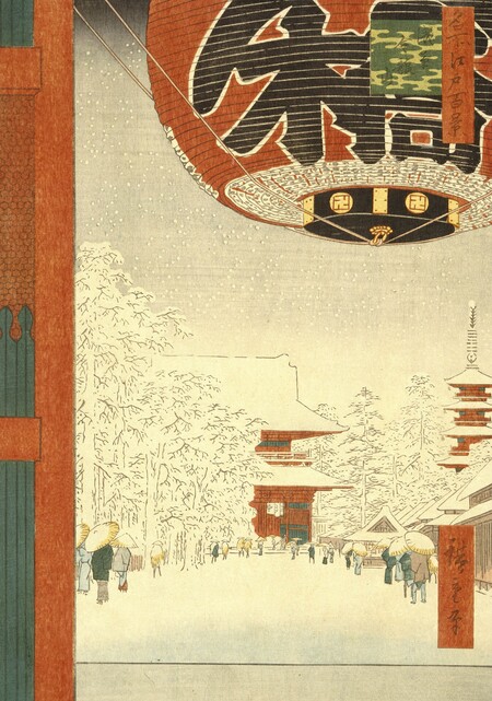 Священные места в композициях воплощают духовный мир Эдо — пространство, где человек соединяется с вечным, природой. Город предстает как естественное продолжение, вписанное в ритм сезона.