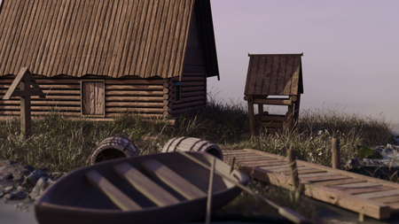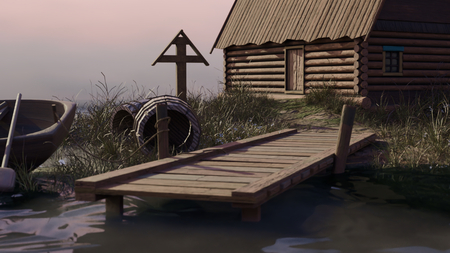 Проект выполнен по брифу студии «Crubbuckweatstudio»: нужно было создать первую локацию будущей игры — старославянскую деревушку, с которой игрок начинает свой путь. В сцене представлены изба, колодец, бочки, мост, лодка и голубец (домовина).