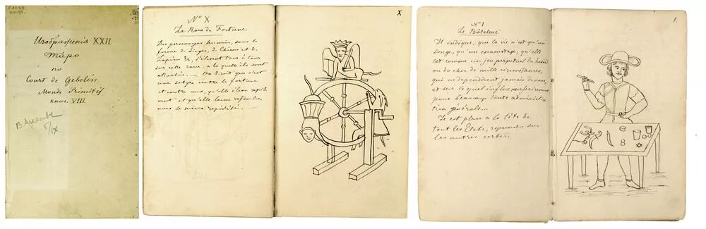 Сидоров, А. А. Изображения XXII Таро по Court de G? belin. Monde primitif. [Курту Гебелину. Древний мир] Книг VIII. Рукопись А. А. Сидорова с изображением 22 карт. Тушь, перо. В записной книжке 1920-х гг