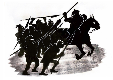 Графическая серия иллюстраций, посвященная рыцарям, в которой каждая работа вдохновлена битвами. В этой серии я хотела передать атмосферу средневековых сражений и поэкспериментировать с многофигурной композицией, силуэтами и линией.
