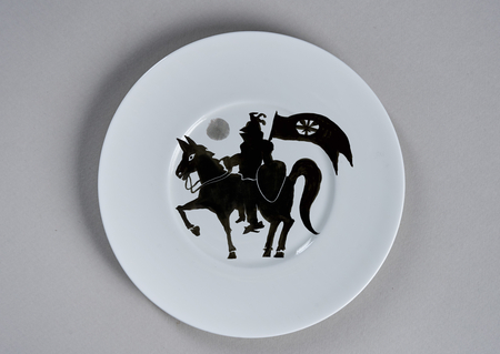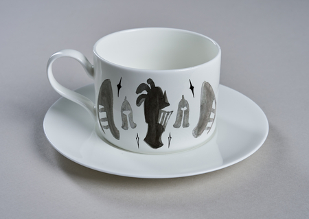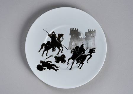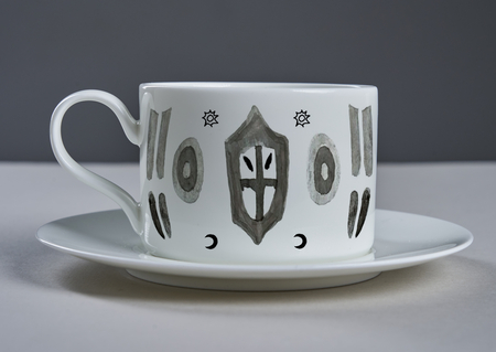 Для чашек из чайной пары я разработала новые сюжеты, так как переносить на их развертку такие плотные многофигурные композиции сложно. А для блюдец я использовала уже готовые листы, которые неплохо вписались в круглый формат.