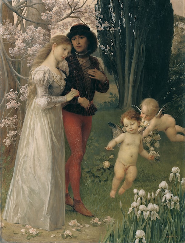 Художники эпохи Возрождения рассматривали любовь не только как физическое влечение двух людей друг к другу, но и как глубокую душевную связь. Как и в Средневековье, нередко использование аллегорий и символов. Из-за большого уровня неграмотности населения вместо слов и текста любовные чувства выражались через предметы-символы и цвета, каждый из которых имел свое значение