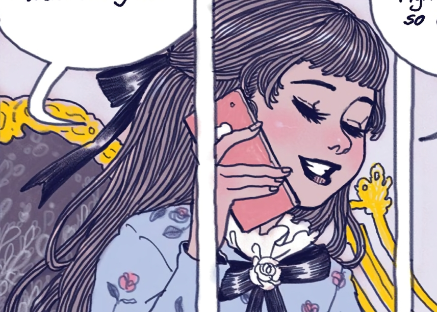 Аналогично и во второй истории, где синие, зеленые и фиолетовые цвета, которые обычно ассоциируется со спокойствием, переходят в желто-оранжевый с вкраплениями красного, предупреждая читателя о приближающемся зле.