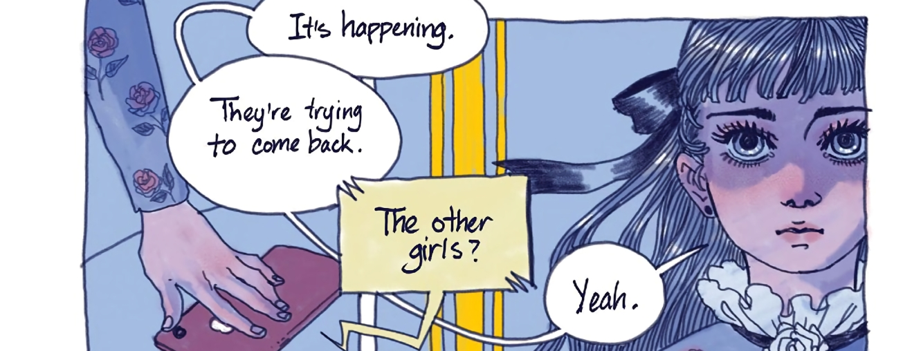 Baby Blue демонстрирует противоположное отношение к смерти. Мертвое тело представлено не для того, чтобы вызвать сочувствие (как в предыдущей истории) или отвращение, смерть в этой истории обесценивается и возводится в абсолют нормальности. Визуальный стиль истории — пастельный, почти игрушечный, превращает насилие в декор. Эта эстетизация телесного распада обесценивает сам факт человеческой жизни: тело перестаёт быть носителем боли, превращается в красивый объект, элемент интерьера.