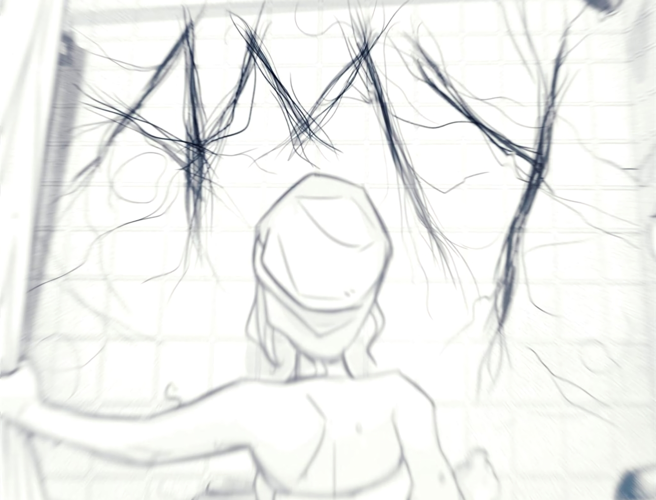 Со временем он начинает видеть за масками не людей, а чужие, мёртвые, восковидные лица — пугающие «замены», которые говорят голосами родных. Мы даже можем уловить как от первого фрейма, где используются чистые цвета, к конечному палитра становится более грязной, вместо приятной акварельной текстуры, мы видим шум, резкие геометричные линии.