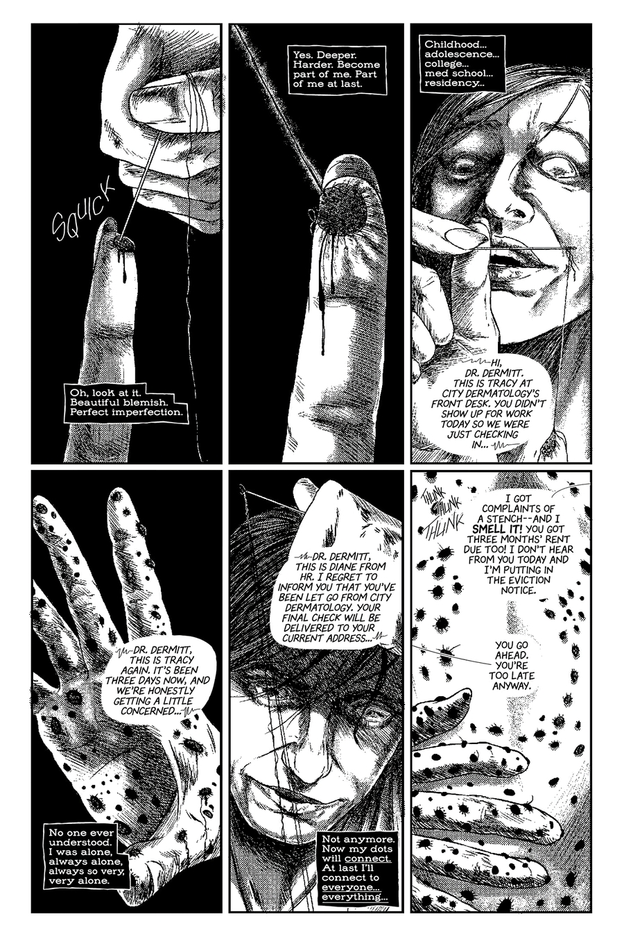 История о дерматологине, которая видит во вселенной и человеческой коже одно и то же: бесконечные карты из точек, которые составляют созвездия, и которых она лишена. Она решает собрать собственный космос из чужой плоти на своем теле. Вырезанные родинки она хранит, а потом вшивает в себя, пока тело не покрывается ими полностью, теперь у нее есть все созвездия мира на ее коже. В финале она буквально растворяется в этом телесном космосе, ее убивает ее маниакальная навязчивая идея, о том, что она больше не будет одинока.