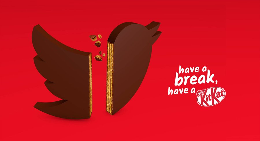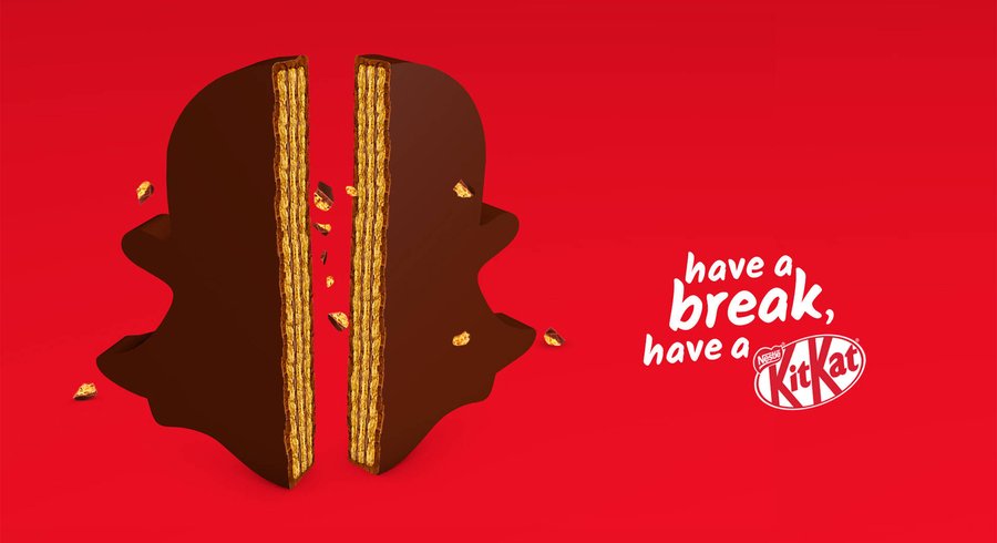 В рекламной кампании «Have a break, have a KitKat» используется ярко выраженная визуальная метафора. Социальные сети изображаются в виде интерфейсов, которые «ломаются» по характерной линии разлома шоколадки KitKat.