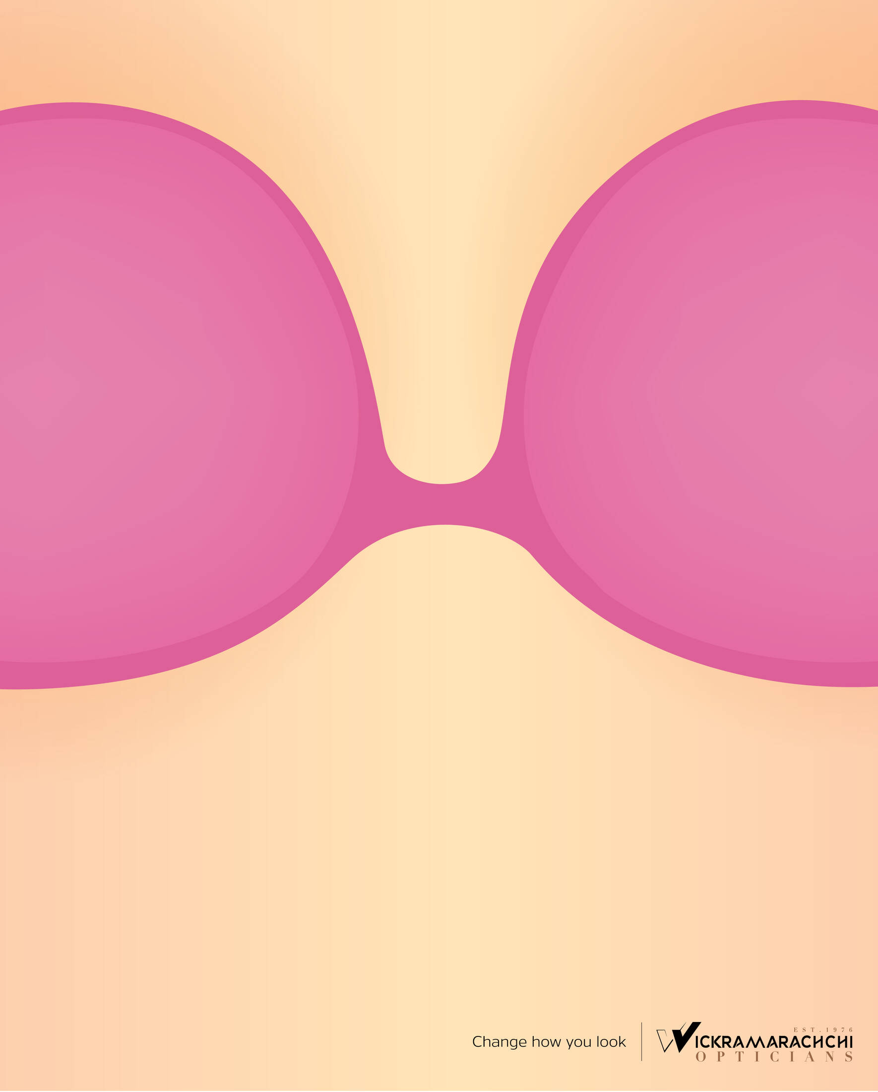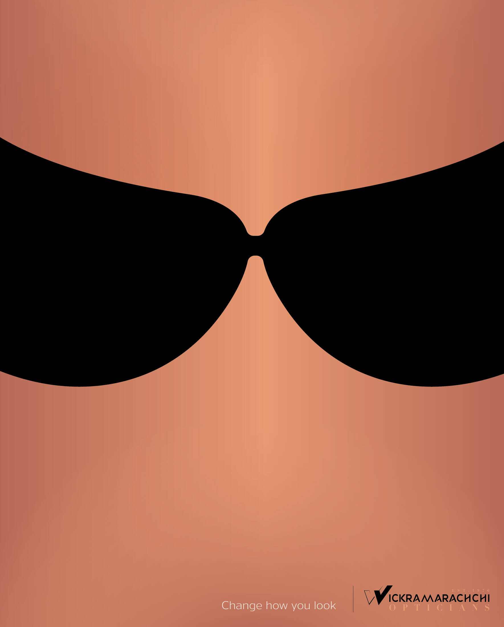 В рекламе Wickramarachchi Opticians используется наглядная визуальная метафора: при первом взгляде изображение кажется бюстгальтером, при внимательном рассмотрении — это солнцезащитные очки. Такое двойное прочтение усиливает вовлечённость зрителя и делает рекламу более запоминающейся.
