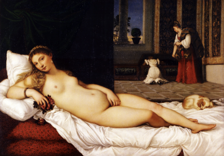 Венера Урбинская Тициана начала новое представление Венеры. Это изображение использует эротический подтекст мифологической Венеры в образе обычной женщины.