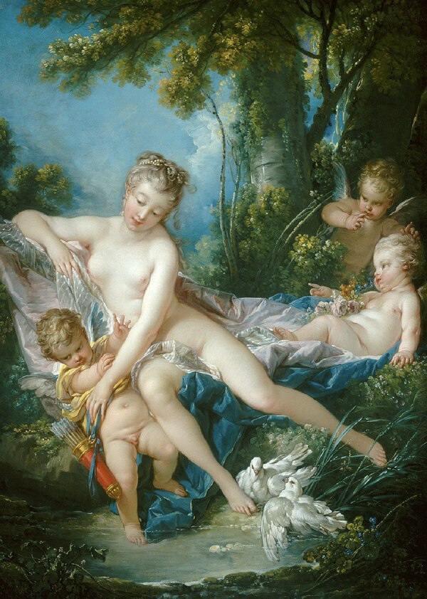 Изображение обнажённых тел подчёркивает чувственность и естественную красоту, типичную для искусства рококо, к которому принадлежит картина.