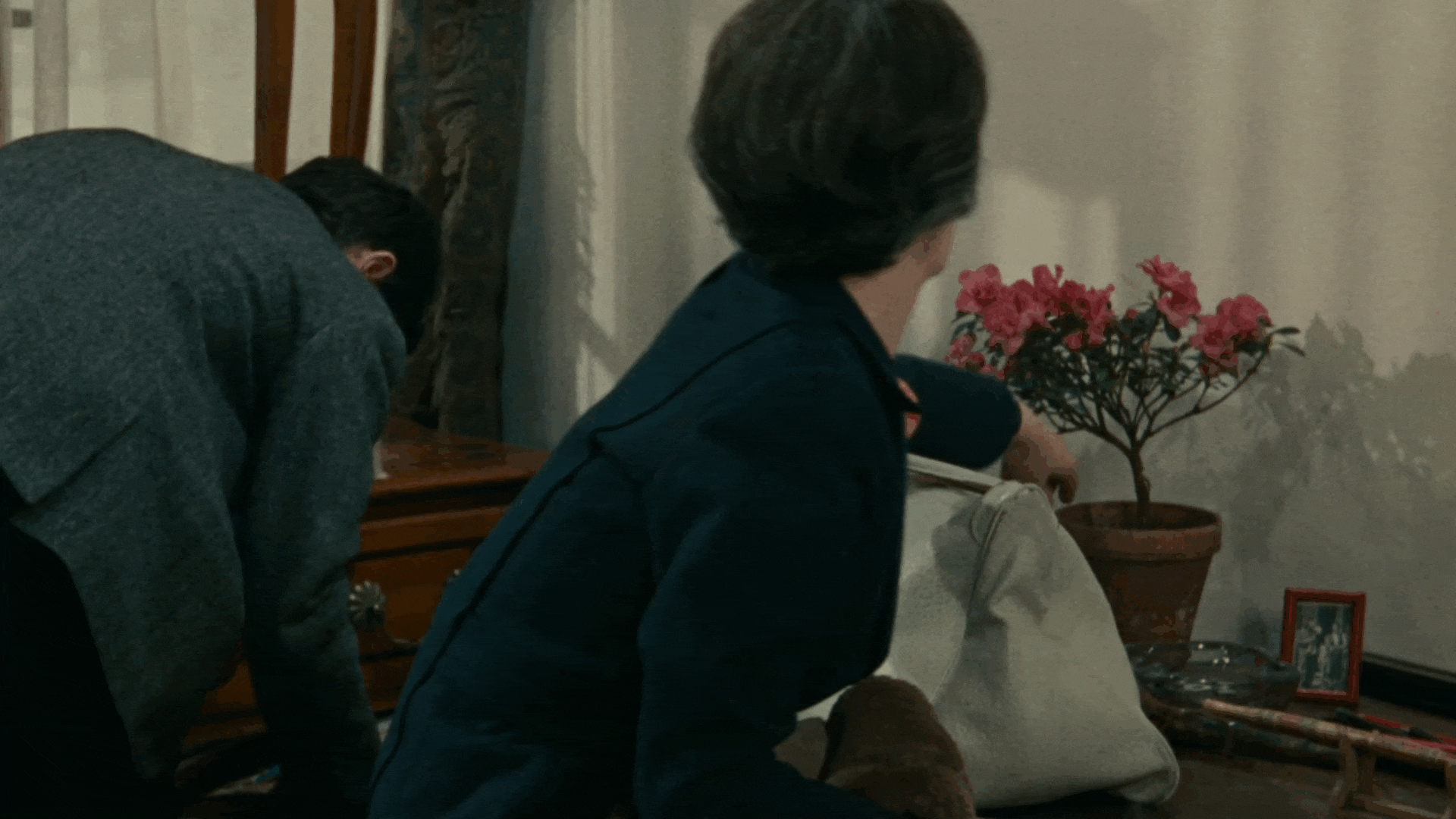 Через рубленый монтаж крупные планы предметов домашнего быта коррелируют с дальними неподвижными сценами, наполненными воздухом. Торжество шумных деталей, которым открывается фильм, приводит к пустой квартире в финале, оставленным праздником с этим помертвевшим букетом роз.
