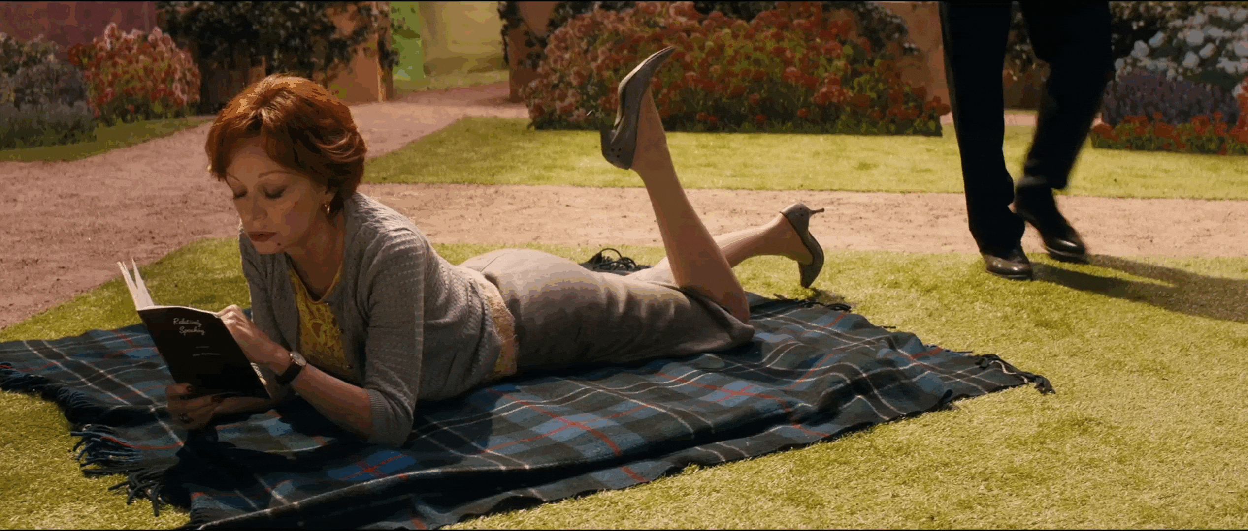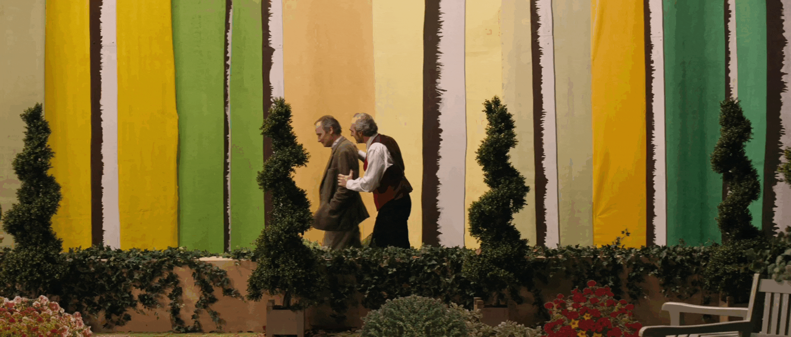 После активно сменяющихся чередований фрагментов, такого бурного потока воображения, особенно выразителен спокойный, просторный, залитый светом сад. Это место возвращает нас в настоящее, где выходки героев — противоположность того, кем оказались их реальные прототипы, родственники писателя, приехавшие на его день рождения. Но фигура старика, человека на исходе времени, все равно остается где-то в закоулках прошлого, которое когда-то привело к смерти его жены.