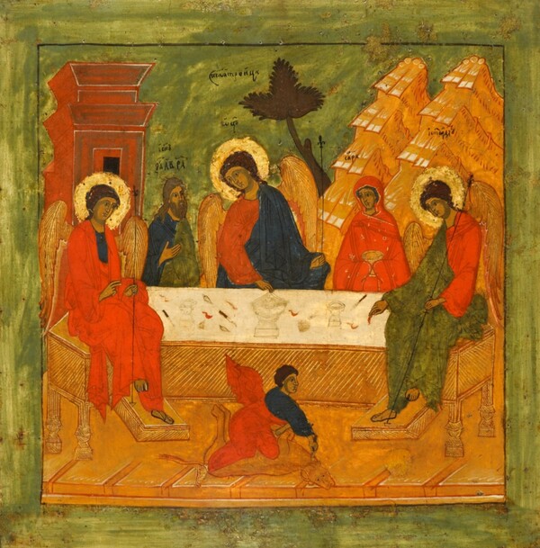 1. Двенадцать апостолов, автор неизвестен, первая четверть XIV в. 2. Троица Ветхозаветная, Андрей Рублёв, середина XVI в.