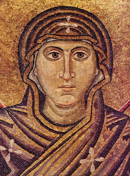 Богоматерь Оранта (фрагмент), автор неизвестен, конец 30-х —40-е гг. XI в. фото из книги: Евсеева Л.М., Комашко Н.И., Красилин М.М. и др. История иконописи, 2014 г. 52 с. (дата обращения 11.11.25)