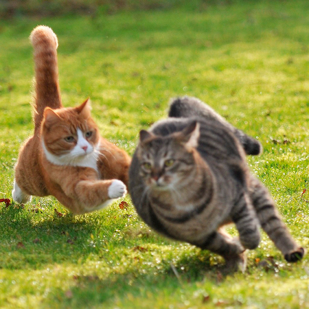 A Picture Of Two Kittens Running Over The Grass During The Daytime/2010