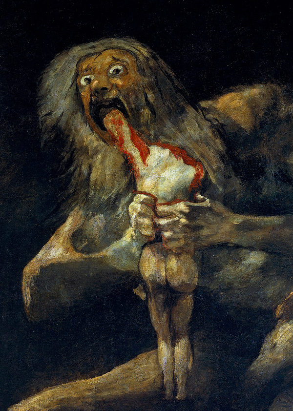 «Сатурн, пожирающий своего сына» — это изображение римского бога, известного как Сатурн, который в прямом смысле этого слова пожирает своего ребёнка. Тут следует напомнить предысторию этого божества. Сначала это был греческий титан, носящий имя Кронос. Согласно пророчеству, его должен был свергнуть один из его детей, и в результате он решил съесть их всех, чтобы избежать своей участи.
