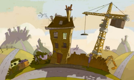 Короткометражная работа, представляющая из себя комедию-буффонаду о каскаде событий в жилом доме с использованием 2D и 3D анимации. В визуале мультфильма преобладают быстрый, скачущий монтаж, ритмичная анимация и быстрая смена визульных решений создают высокий темп.