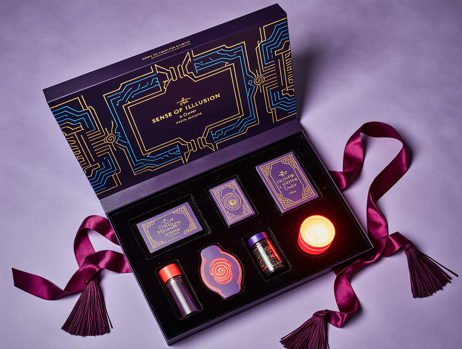 Набор волшебства включает в себя различные атрибуты иллюзионистов и нацелен погрузить ребенка в атмосферу волшебства и загадок. Дизайн разработан и выполнен в стилистике бренда Sense of illusion, а при изготовлении набора были использованы только премиальные материалы для того, чтобы только взглянув на набор ребенок уже смог погрузиться в волшебный мир.