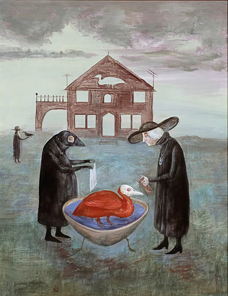 Леонора Каррингтон в своих зачарованных мирах часто обращается к магии, алхимии и колдовству. Если у Босха его монстры несут в себе зашифрованные предостережения людям против тлетворных последствий их грехов, то у сюрреалистов эти причудливые гибридные существа словно вышли из сна или нашего подсознания, но необязательно олицетворяют нечто ужасное.