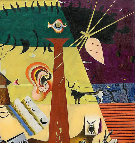Жоан Миро, «Вспаханное поле» 1924 // Иероним Босх, «Сад земных наслаждений», фрагмент, 1500-е