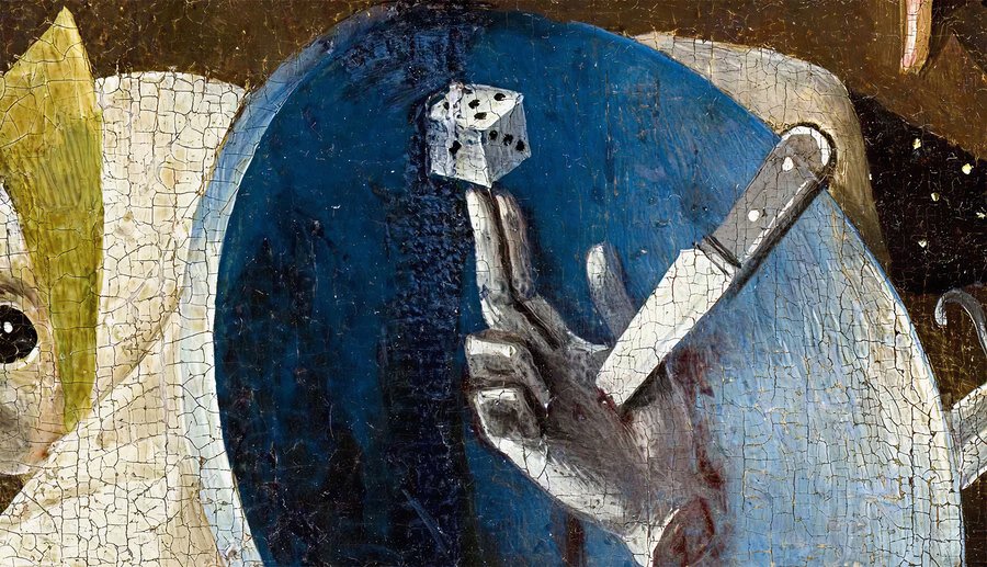 Отрубленное запястье на картине Босха «Сад Земных наслаждений» с игральными костями, вероятно, должно напомнить зрителю о пагубных последствиях азартных игр.