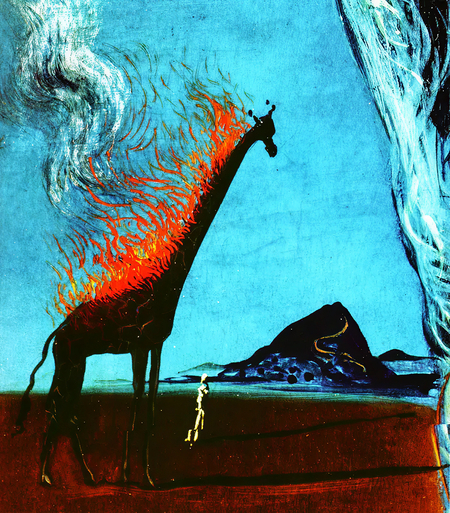 Сравним пожары Босха с огнем, полыхающим на картинах сюрреалистов. У Дали огонь всегда несет в себе очень тревожные смыслы — на знаменитой его картине «Жираф в огне» пылающий жираф, по мнению историков искусства, олицетворяет ужасы Гражданской войны. Сам Дали называл его «мужским космическим апокалиптическим монстром». [11] В этом смысле символизм огня у Дали близок босхианскому: огонь — предвестник апокалипсиса.