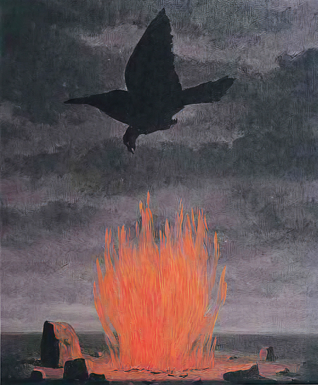 Тревожная картина сюрреалиста Рене Магритта «Фанатики» с изображением огня близка картинам Босха и по мрачным цветам, и сюжетно.