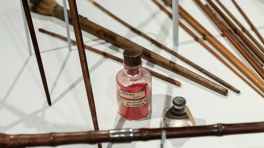 Пигменты: (он применял традиционные пигменты XVIII века, такие как свинцово-оловянная желтая, киноварь, ультрамарин и кармминовые лаки, иногда смешивая их со смолой и воском для достижения особого блеска.)