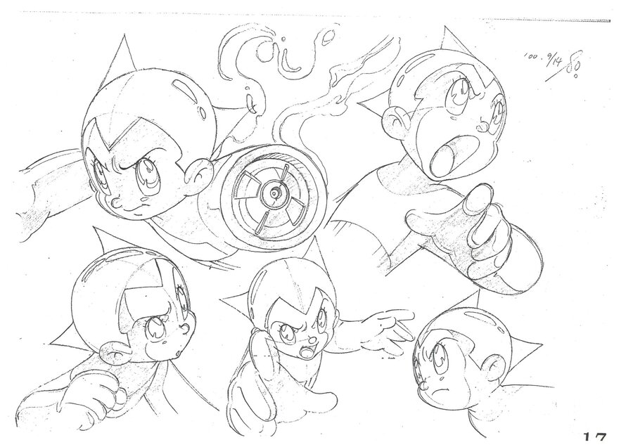 Кадры из мультсериала «Астробой» (鉄腕アトム, Тэцуван Атому, «Могучий Атом») 1963 г. / «Новый Могучий Атом» (新・鉄腕アトム, Син Тэцуван Атому) 1980 г.
