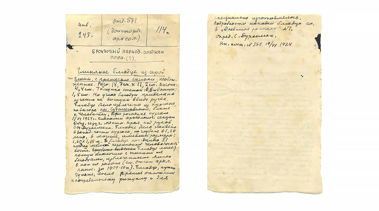 Прежде чем у музеев появились правила и единый способ маркировать предметы, вещи сопровождали маленькие рукописные заметки. Эти бумажки были сделаны самими участниками экспедиций: офицерами, учёными, художниками, служащими. Они писали быстро, в полевых условиях, на чём угодно — это могли быть куски плотной бумаги, вырезанная картонка, обрывок записки.
