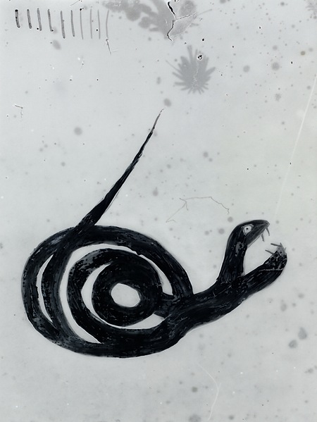 Змеи — одни из самых повторяющихся образов. Они появляются в изгибах и спиралях, иногда угрожающе приближаясь к фигурам. В афроамериканской культуре змея связана с двойственной природой: она может быть и мудрым духом, и носителем опасности, а также проводником между мирами. Образ змеи также связан с традициями вуду, где она символизирует силу, защиту или вмешательство сверхъестественных сил.