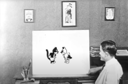 Взаимодействие художника и его творения является, вероятно, ключевым в развитии комбинированной анимации в первой половине XX века. Юмор в таких ситуациях строится на том, что мультипликатор, будучи создателем, является эдаким всемогущим для нарисованного героя. Так, он может на глазах у персонажа создавать для него новые предметы, задавать определённую обстановку, а «мультяшка» вынужден подстраиваться под условия. Из этого, в свою очередь, комедия зачастую выливается в то, что недовольный своим положением анимационный герой пытается как-то противодействовать художнику. Ярким примером такого юмора является серия коротких метров «Out of the Inkwell», в которых язвительный клоун Коко часто пытается помешать Максу Флейшеру что-нибудь с ним сделать.