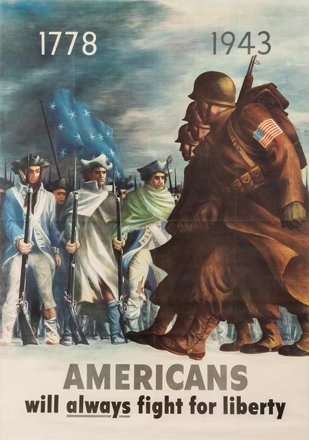 В. Иванов «Наша правда. Бейтесь до смерти!», 1942 г. Б. Перлин «Americans Will Always Fight for Liberty», 1943 г.