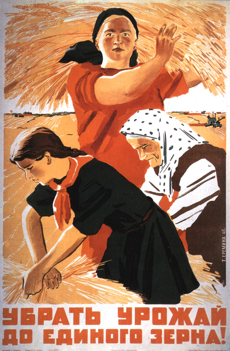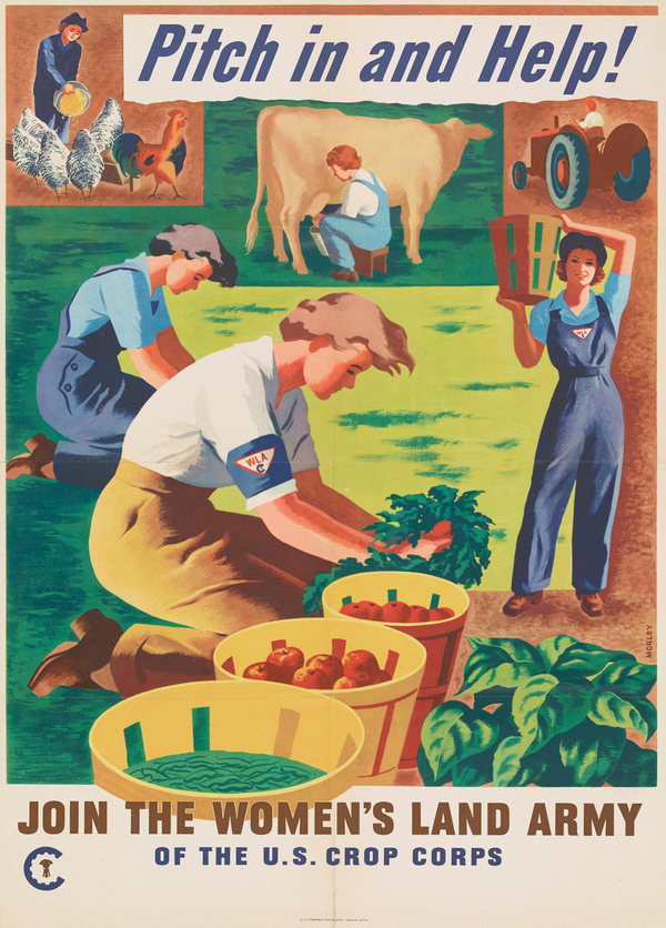 Т. Ерёмина «Убрать урожай до единого зерна!», 1941 г. Х. Морли «Pitch in and help! Join the Women’s Land Army of the U.S. Crop Corps», 1944 г.