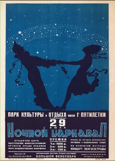 Большое значение имели композиционные решения. Художники использовали диагонали, вытянутые силуэты, разворот фигуры, летящие ленты костюмов. Элементы одежды становились продолжением движения и подчеркивали его ритм. Благодаря этому плакаты создавали ощущение постоянного танцевального импульса даже в статичном изображении.