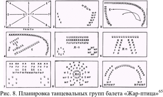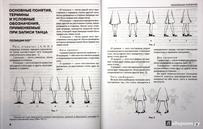 Учебники по народному и народно-сценическому танцу представляют собой один из самых уникальных визуальных материалов. Они содержат специальные графические схемы, которые объясняют движения поэтапно. Художники учебников использовали простой контурный рисунок, схематичность, стрелки и траектории.