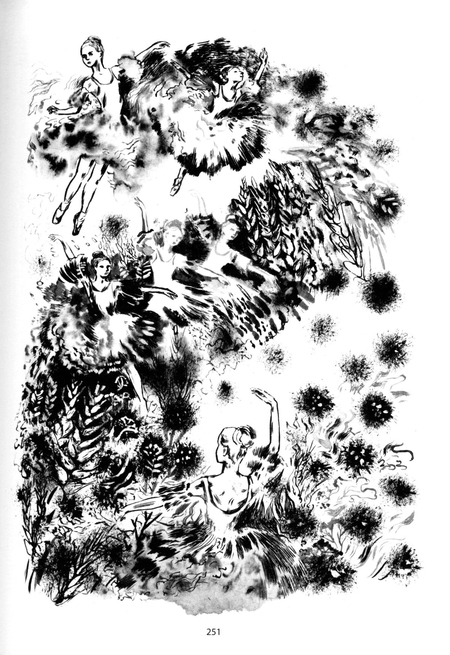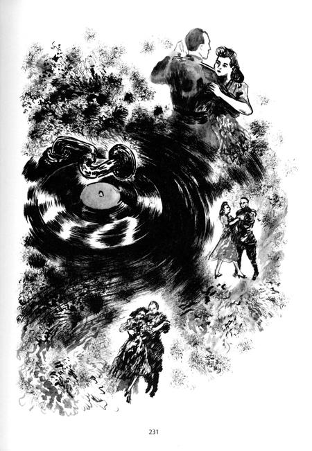 Фактура на страницах придает особый шарм всему роману, передавая разные эмоции абстракцией. Благодаря этому визуальному приёму в книге одновременно ощутить чувства смутных воспоминаний, тихого ужаса, горя, и даже счастливые и спокойные моменты.