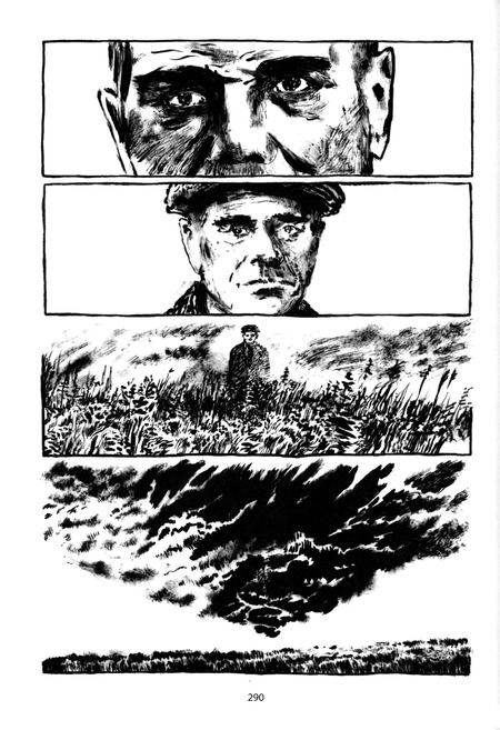 Как я писала ранее, в обоих произведениях используется черно-белая палитра, дабы не перебивать изображаемое от содержания. Цвет здесь не нужен и отсутствие его работает скорее не как ограничение, а как форма документальности и сдержанности.