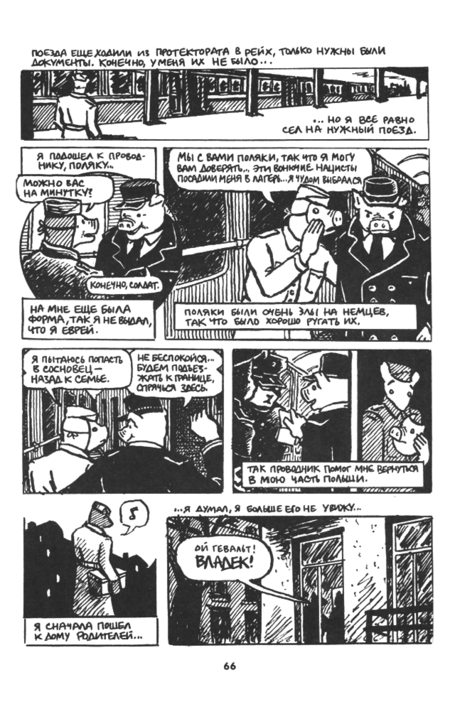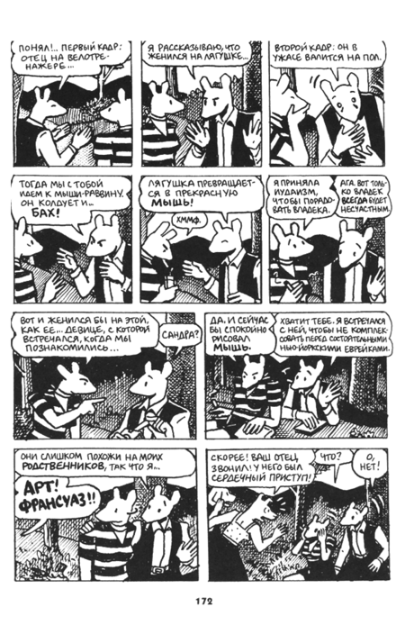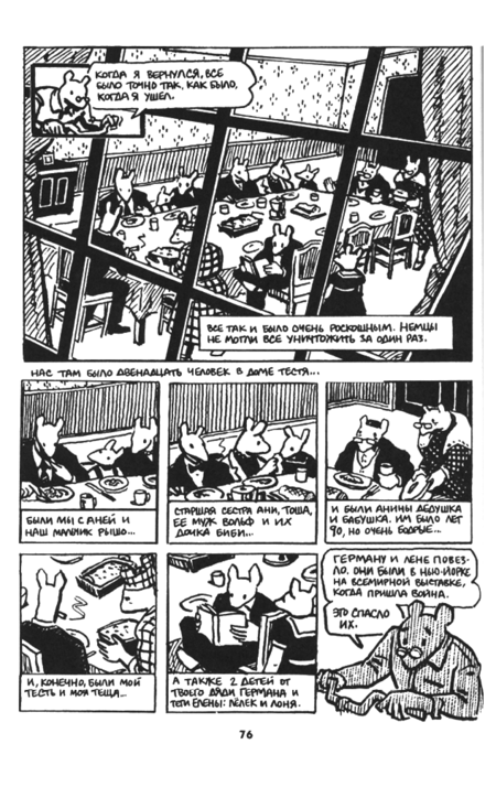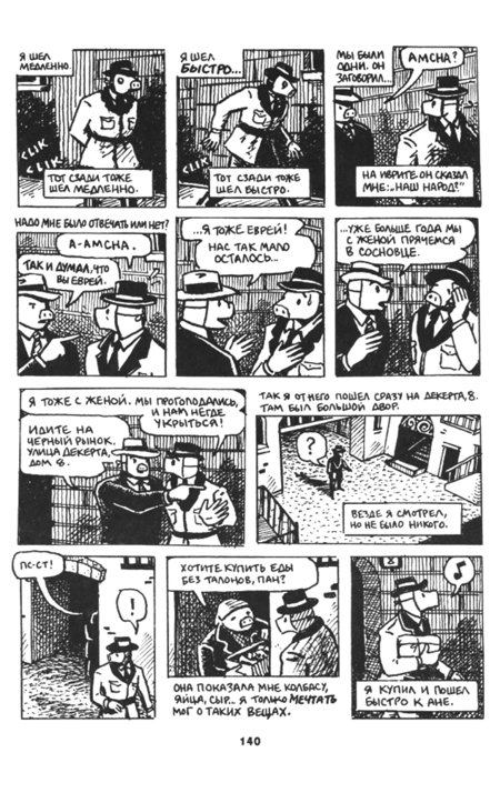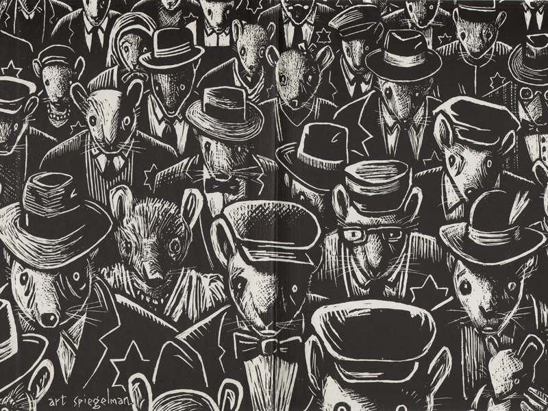 Арт Шпигельман «Маус». Мыши — евреи, кошки — немцы, свиньи — поляки, собаки — американцы, лягушки — французы.