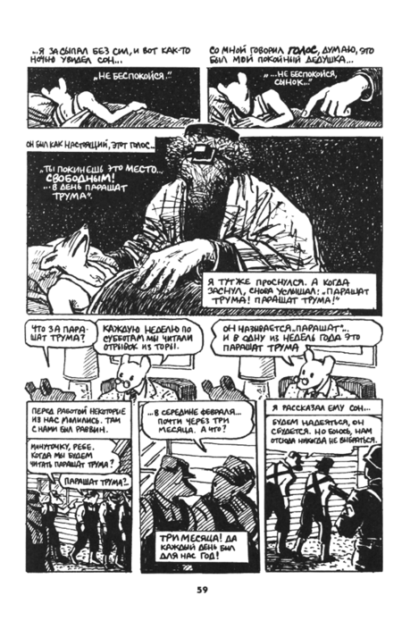 Пророков Г. Маску мыши на себя примерить проще. Интервью с Артом Шпигельманом / Пророков Г. — Издательство Афиша. Воздух, 2013 (дата обращения 12.11.2025) (URL: https://www.corpus.ru/press/art-shpigelman-maus-intervju.htm)