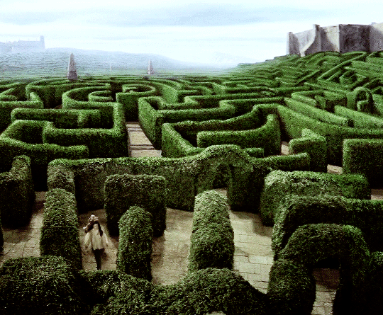 Кадры из фильма Лабиринт 1986. Начальная сцена и сцена с лабиринтом