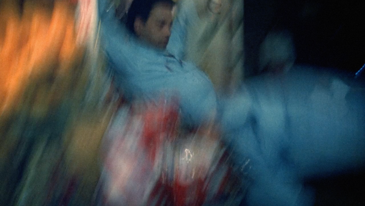 Одним из ключевых визуальных методов режиссера является использование замедленного времени (step-printing), которое преобразует движение в ритмическое, смазанное течение. На уровне кадра этот эффект подчеркивает эмоциональную интенсивность момента и создает ощущение разрыва между внутренним переживанием героев и объективным временем. В работе данный прием будет рассмотрен через анализ скриншотов с характерной размытостью движения, позволяющей проследить, как визуальная фактура заменяет прямое словесное выражение чувств.