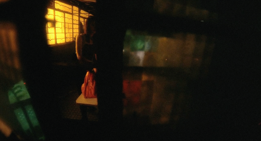 В «Падших ангелах» цвет перестает быть лишь атмосферой и становится инструментом деформации восприятия. Желто-зеленый фильтр, которым покрыты многие сцены, создает ощущение «искаженного» пространства. Ночные эпизоды с Киллером построены на резких контрастах: яркие красные и зеленоватые источники света сталкиваются с глубокой тенью, дробя пространство на отдельные участки. В сюжетах с Хэ Чжиу преобладают кислотные оттенки и нестабильные источники освещения — свет из холодильников, прожекторов и неона.
