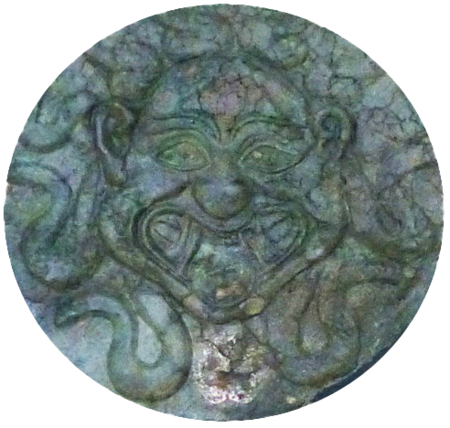 Изображение Горгонеи на бронзовом щите, вырезанном чеканкой.