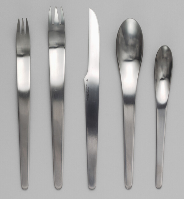 Арне Якобсен «Flatware столовые приборы» 1957 / Вильгельм Вагенфельд, Карл Якоб Юкер «Настольная лампа WA24» 1923–1924