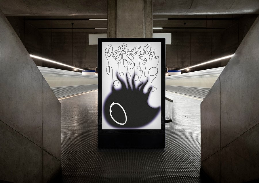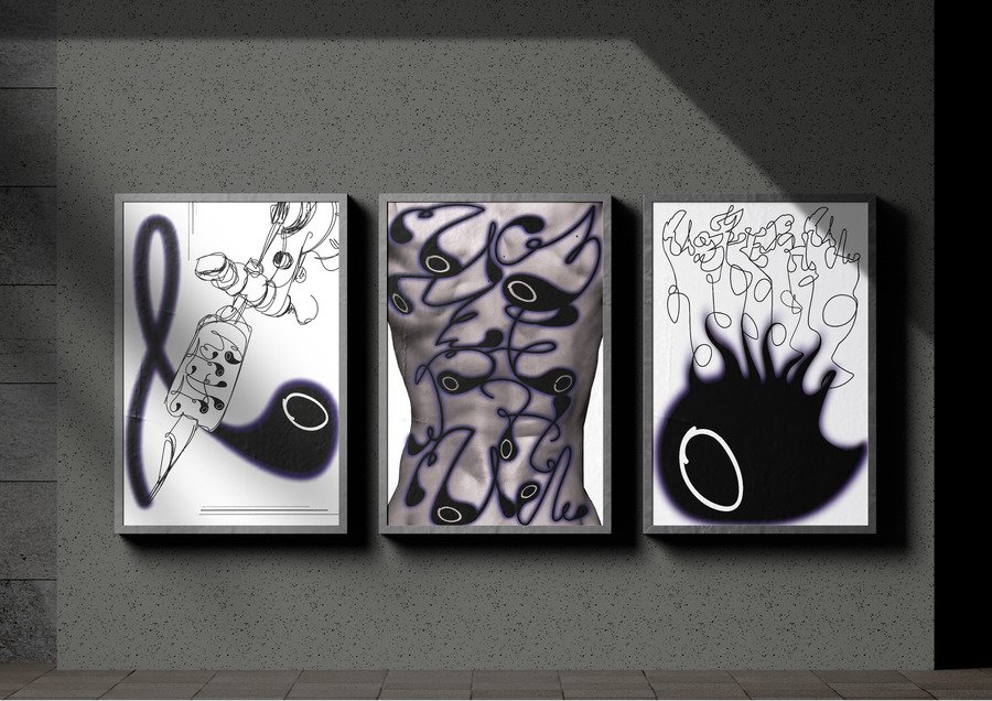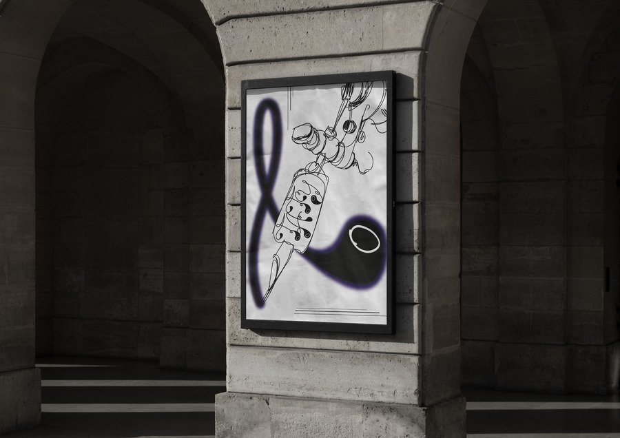 Задача показать через графические элементы свойства и характер основного материала в данной сфере — чернил.