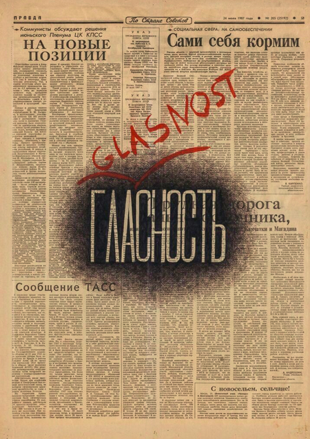 Особенное место в творчестве Дмитрия Александровича занимает работа с необычным медиумом — газетой. Печатное издание для Пригова интересно тем, что уже имеет свой культурный контекст («Гласность»).