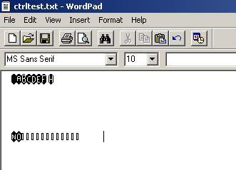 Интерфейс WordPad в Windows 95/98, отображающий символы шрифта MS Sans Serif | Полный набор глифов MS Sans Serif (bitmap-вариант), использовавшийся в ранних версиях Windows