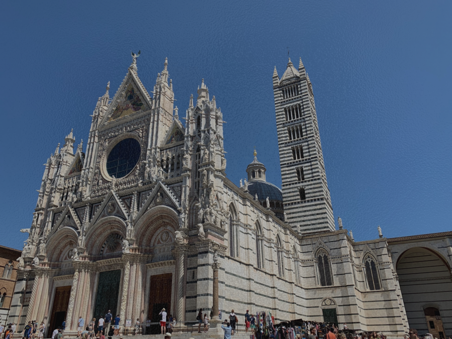 В соборе Санта-Мария Ассунта в Пизе мы видим дальнейшее развитие и изощренную стилизацию романского стиля, который здесь приобретает уникальные, почти «протоготические» черты. По сравнению с суровой мощью церкви Св. Михаила в Хильдесхайме, в Пизе происходят кардинальные изменения в сторону декоративности, легкости и сложности. Арки становятся главным декоративным мотивом. Они используются в огромных количествах, наслаиваются друг на друга, создавая сложный ритм. Появляется характерная «пизанская» арка — пологая, часто опирающаяся на тонкие колонки. План — это классическая романская базилика с трансептом. Однако внутреннее пространство решено иначе. Вместо массивного каменного свода — открытое деревянное перекрытие (когда-то резное и позолоченное), которое делает интерьер более высоким и светлым. Тут уже прослеживается тяга не к земле, а к небу, а значит уход от имперских традиций в сторону готических.